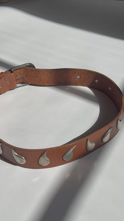 חגורת עור חומה עם טיפות מתכת (34-36)