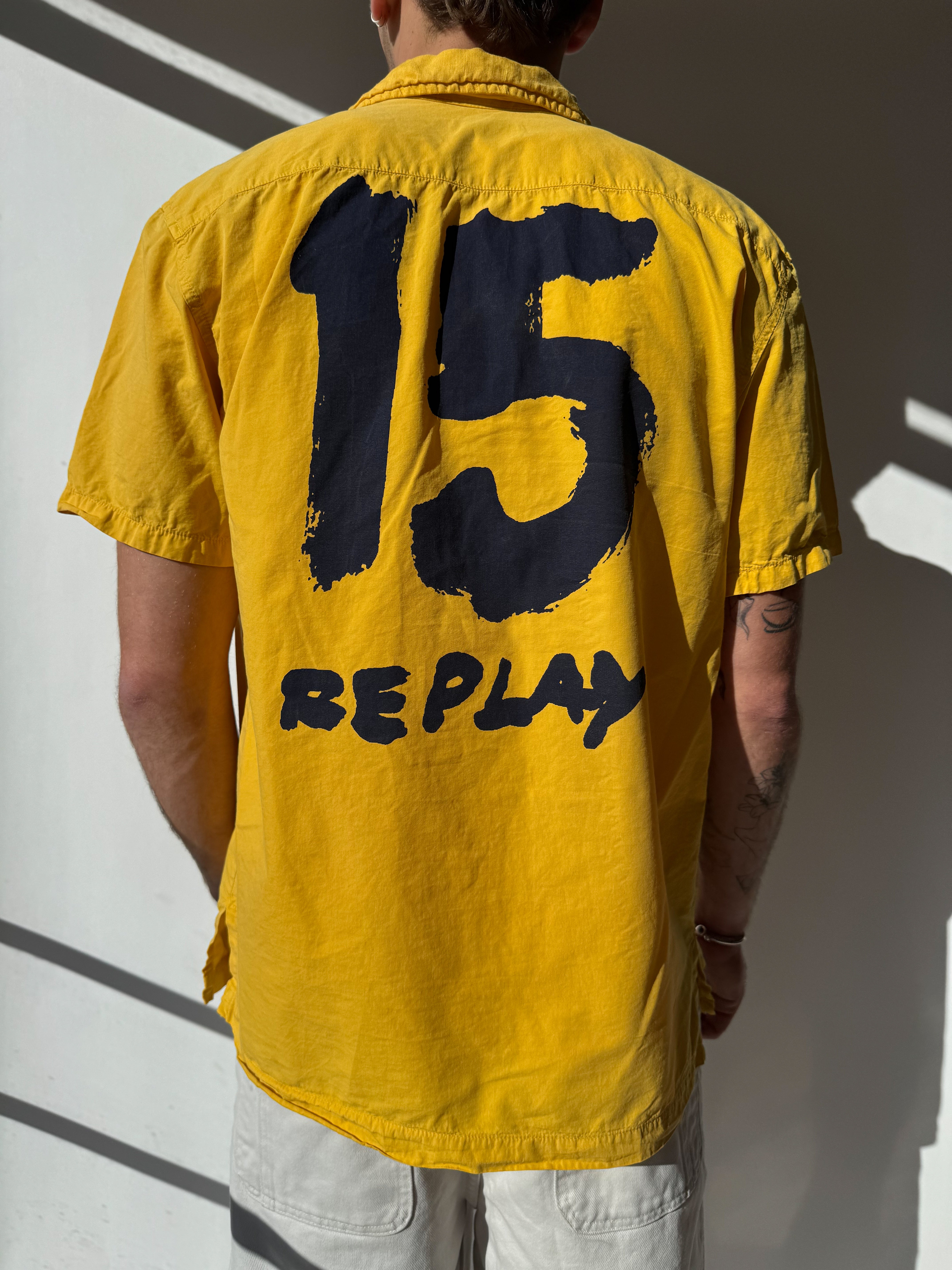 חולצה מכופתרת קצרה בצבע צהוב של Replay. הדפס בחלק האחורי ושני כיסים באזור החזה.