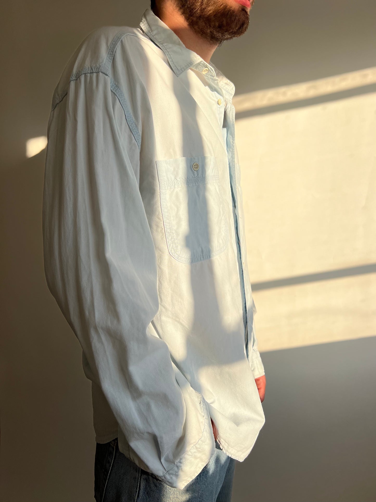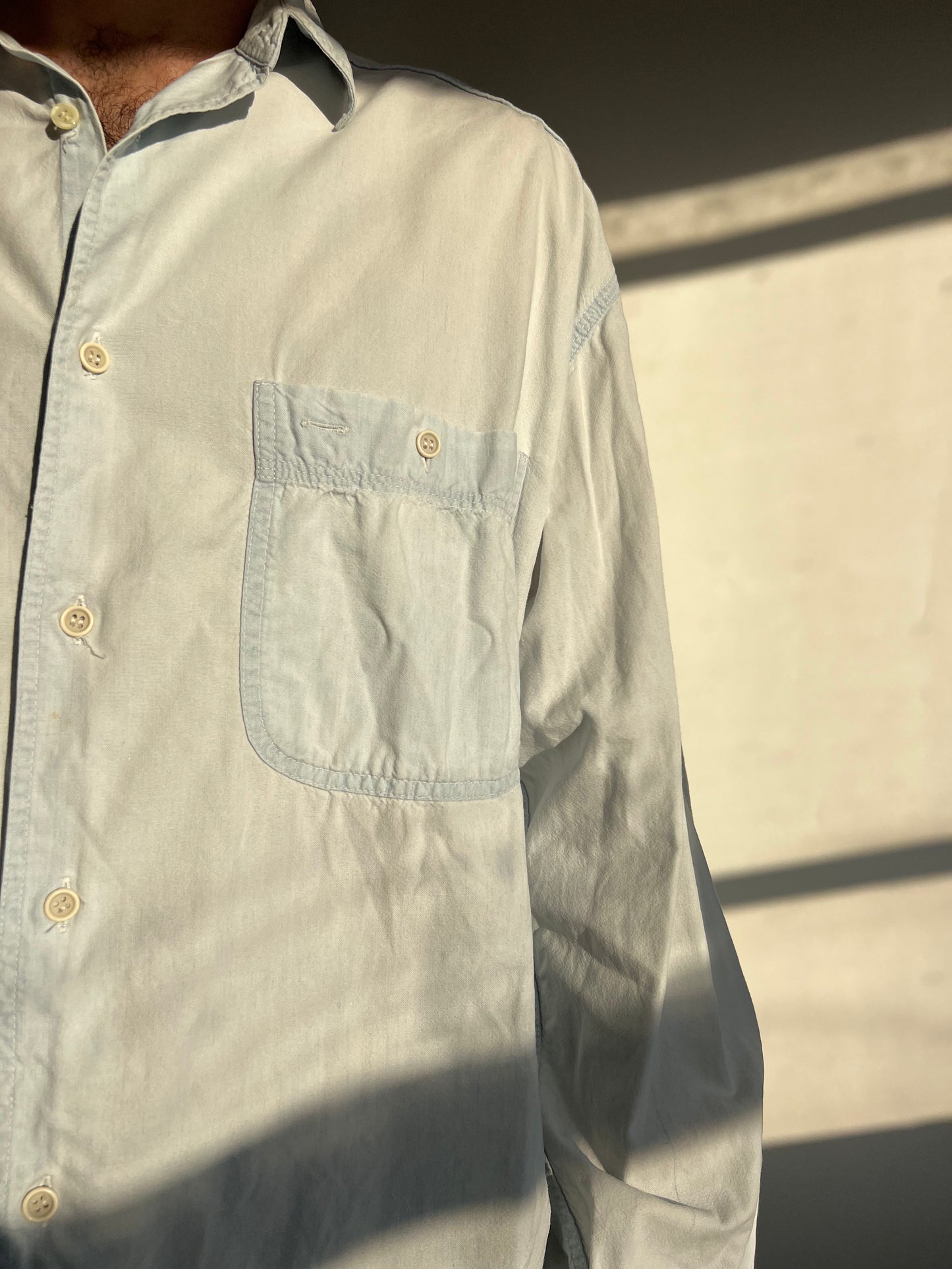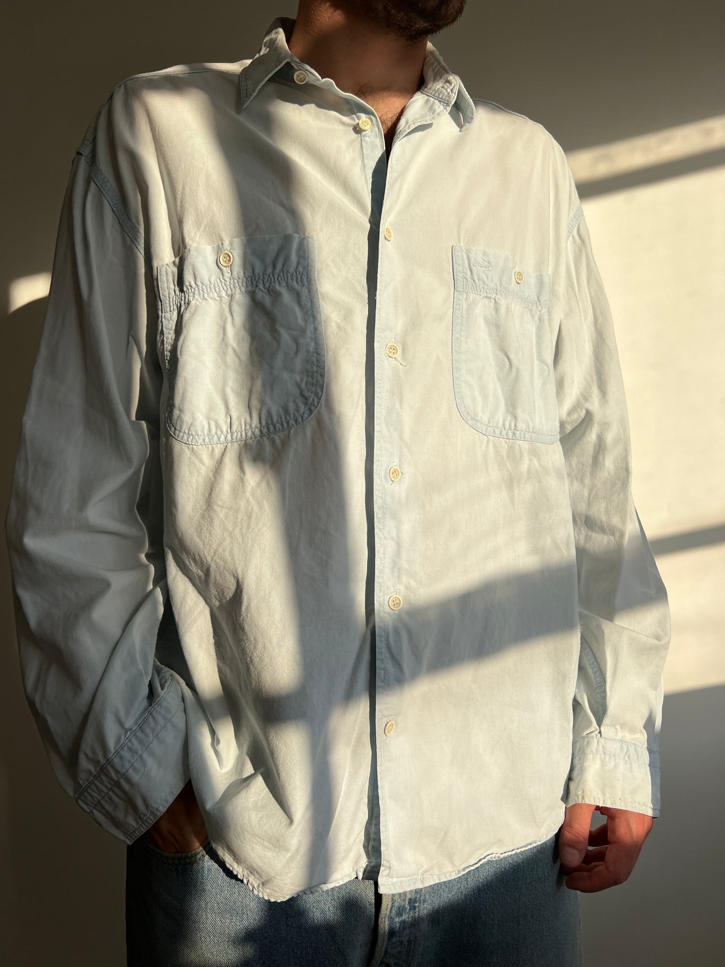 חולצת ג׳ינס מכופתרת בהירה (L)