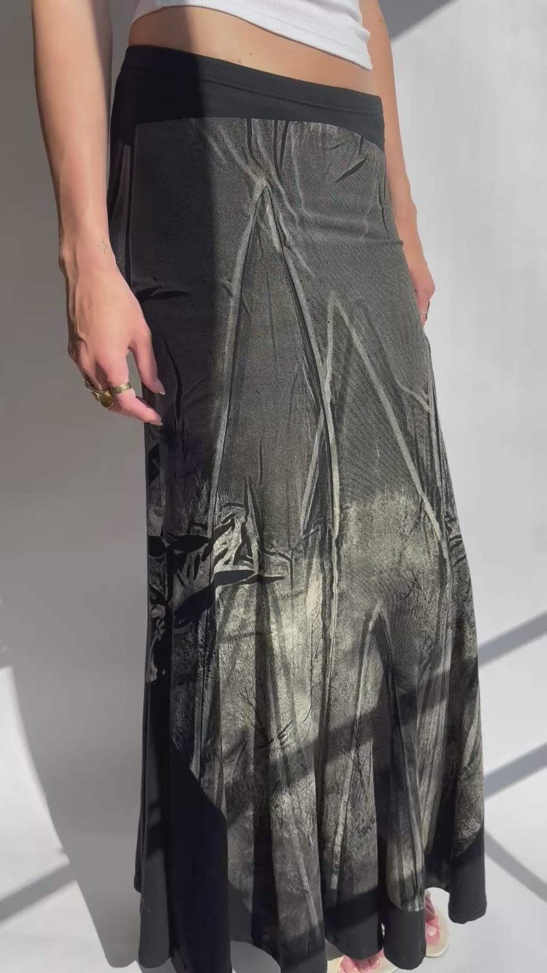 חצאית מקסי שחורה בהדפס (36) מחיר הנחה200₪